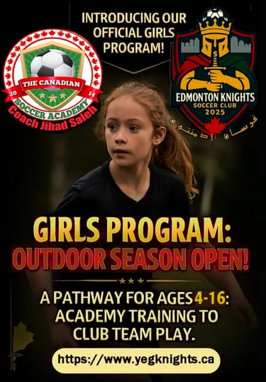 To establish Edmonton Knights Soccer Club as the premier pathway for aspiring athletes to achieve excellence in soccer, academics, and personal development opening doors to professional opportunities in Canada, Europe, and beyond through top-notch training, elite mentorship, and a global scouting network.